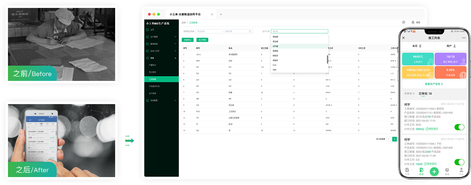 快速报工,绩效工资每日可查,工作成就感十足。操作方便,学习成本低。